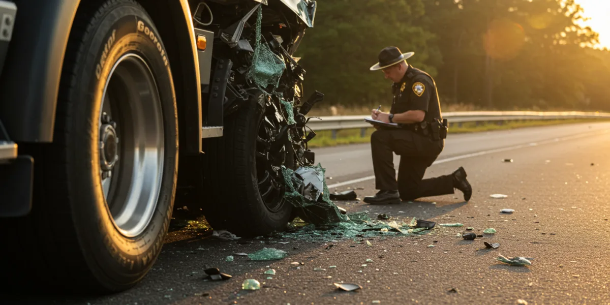 Ensure your safety and the safety of others, call 911, and seek medical attention. Exchange information with the truck driver, document the scene with photos, and contact an attorney as soon as possible.