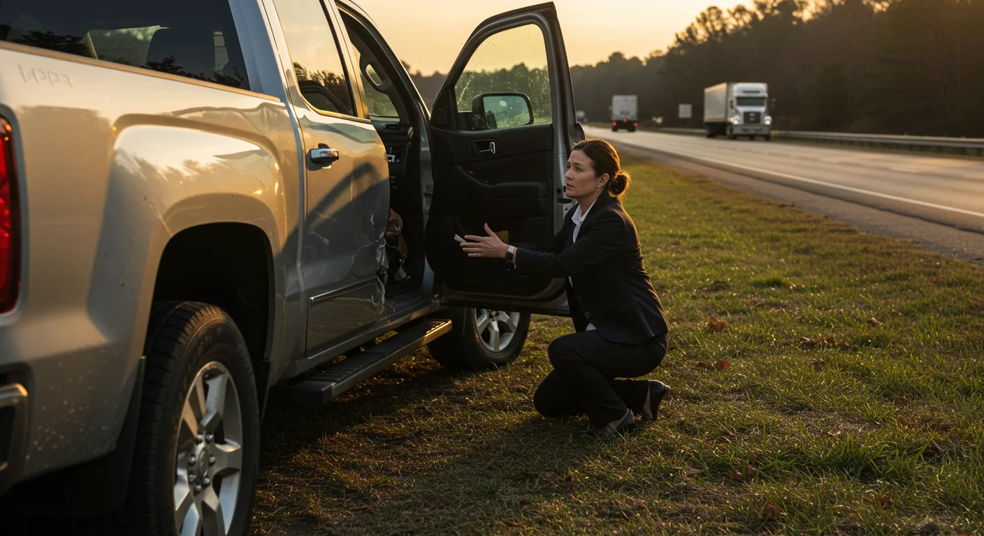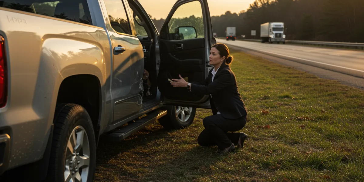 First, ensure your safety and seek medical attention. Call the police and exchange information with the truck driver. Take photos of the scene and any damage. Do not admit fault or make any statements to the insurance company without consulting an attorney.